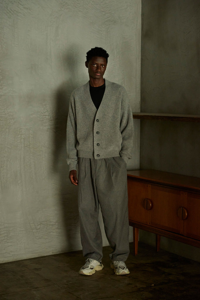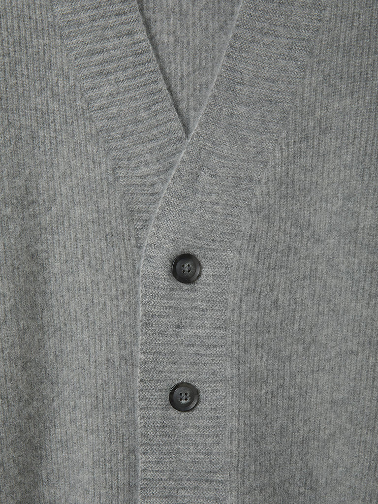 外モンゴル地域で採れるカシミヤは繊維長が比較的長く、通常のカシミヤよりもハリコシがあると言われています。通常よりもやや太番手の2/20番手カシミヤ糸を使用しているため、ふっくらした風合いの10Gのカーディガンになりました。定番だからこそ上質なトレーサビリティのとれた原料を使用した最高級のカシミヤセーターです。