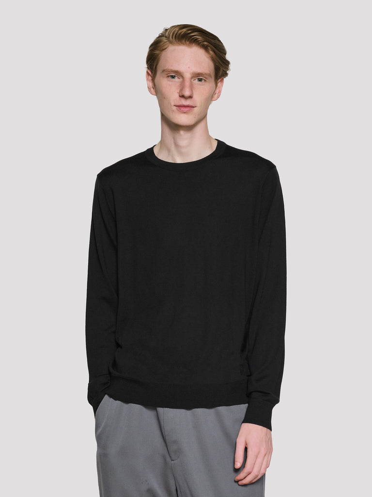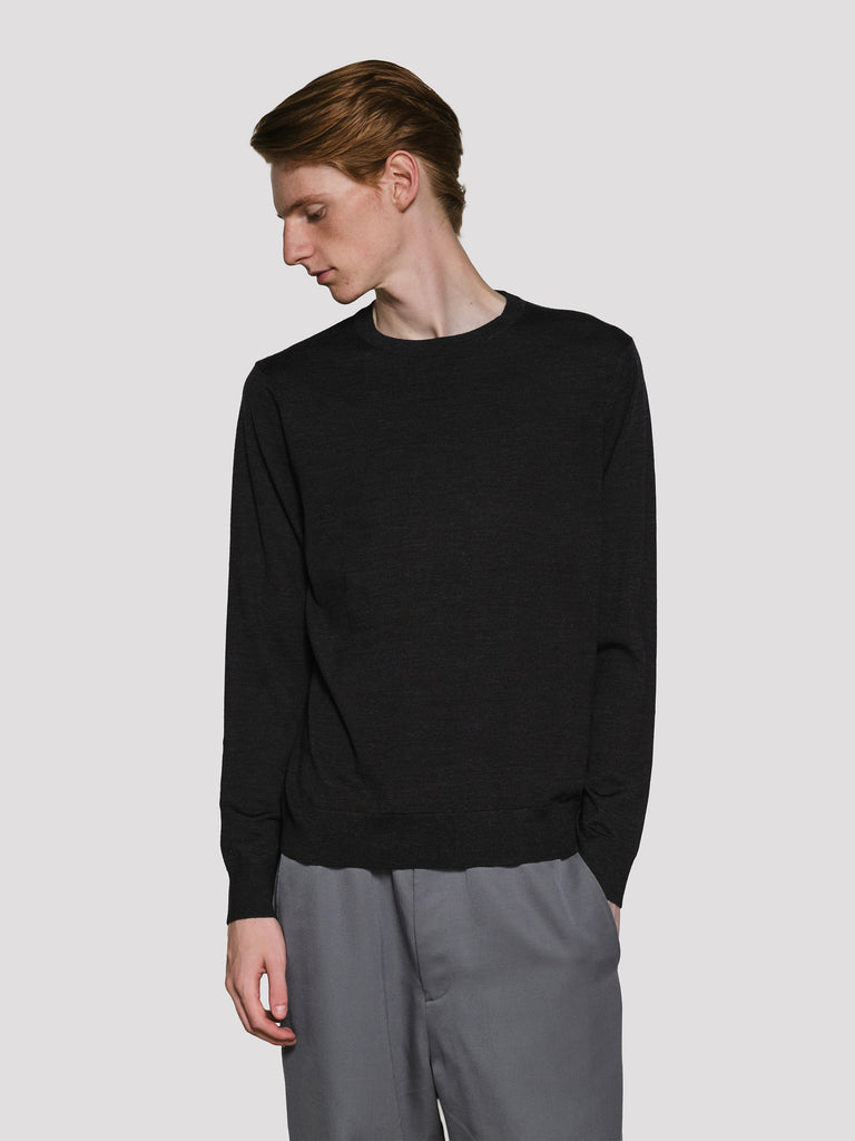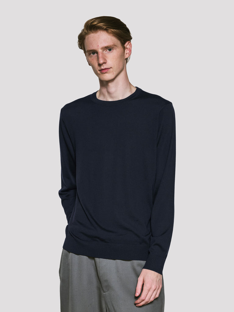 クルーネックの襟ぐりを首に沿うラインに改良し、心地よいフィット感を実現。余計なゆとりを抑えることで、顔まわりがすっきりと見え、着こなし全体に洗練された印象を与えます。ジャケットやアウターのインナーとしてもすっきりと収まるため、ビジネスからカジュアルまで幅広いシーンで活躍します。