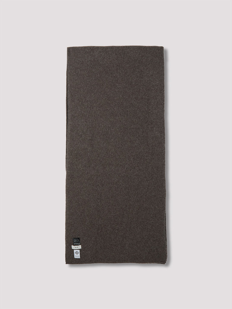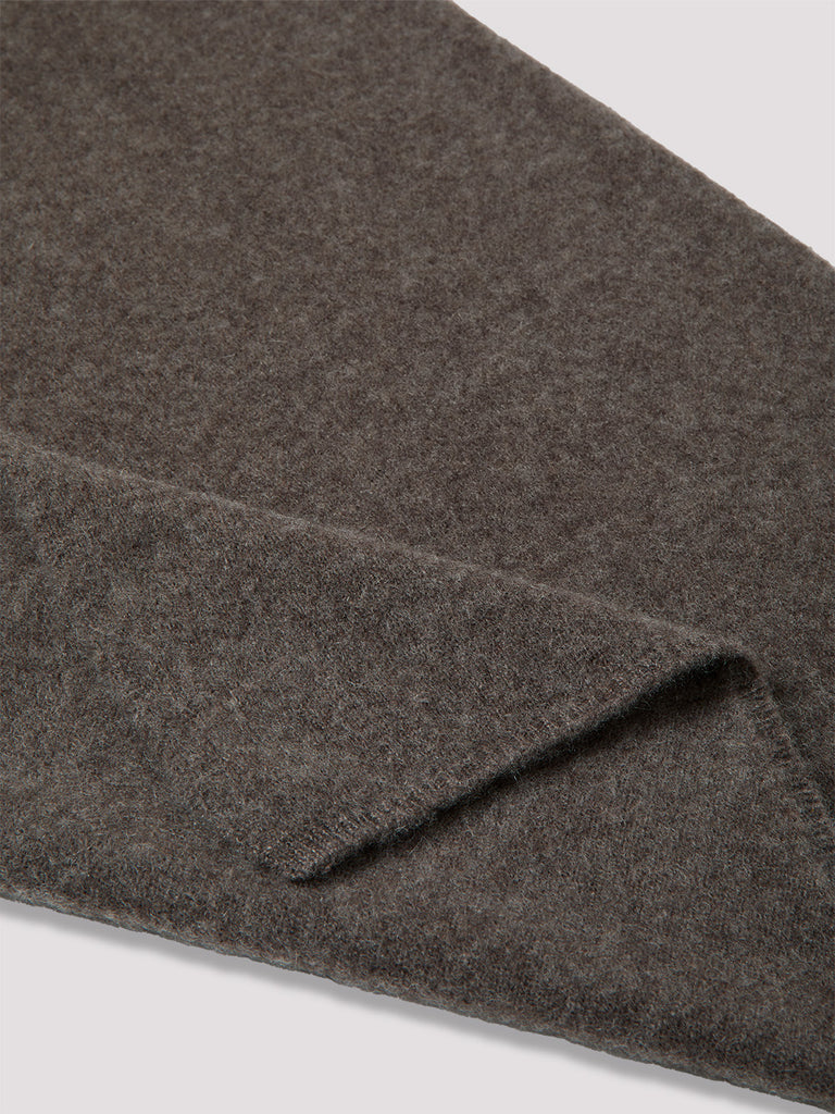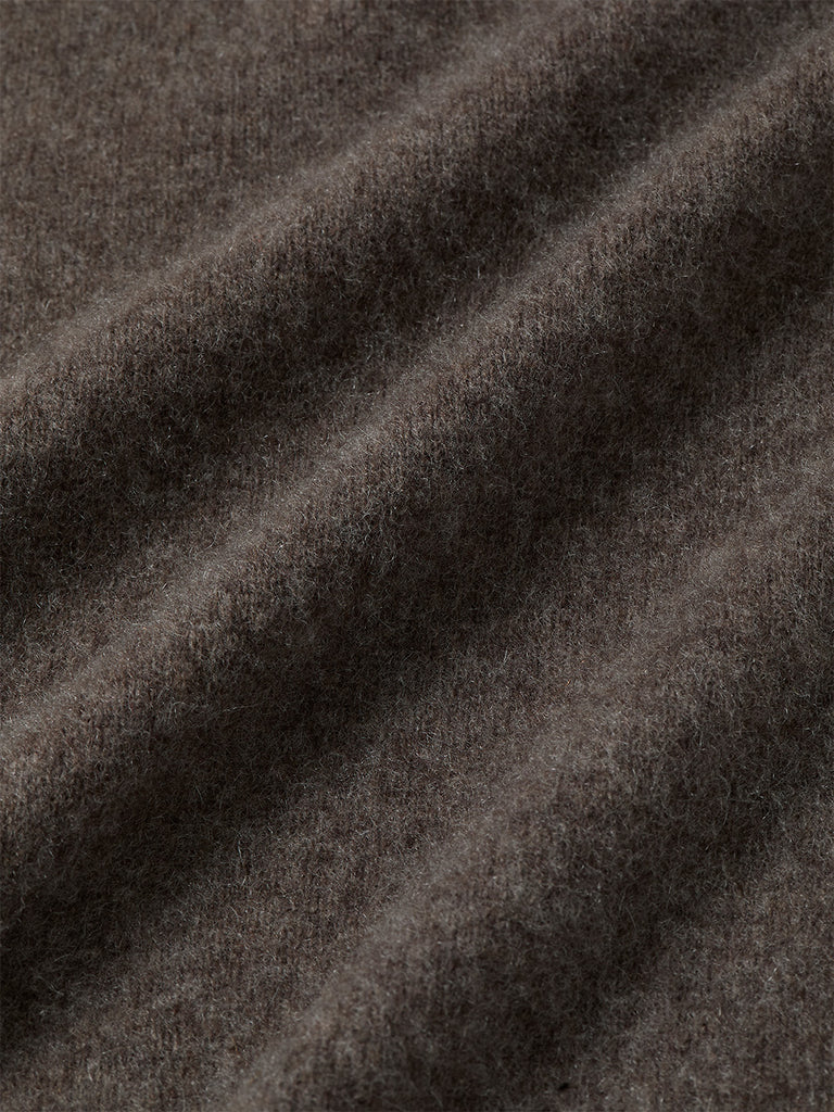 外モンゴル地域で採れるモンゴルカシミヤを使用。10Gの機械で編み立て、表面にファー加工を施しふっくらした柔らかな風合いに。カシミヤセーター1着分くらいの量を使用した贅沢な大判Scarfになります。