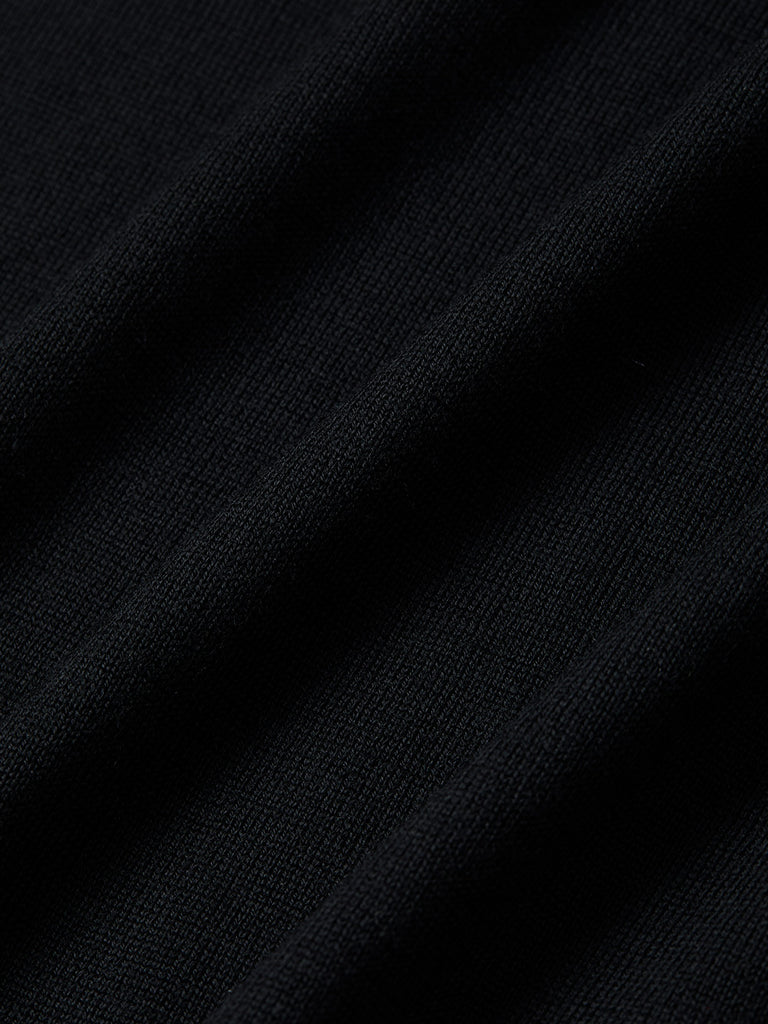 シルク糸をやや度詰めし、ゆっくりと時間をかけて編み上げることで、ハイゲージながらもタフでしっかりとした素材感に仕上げています