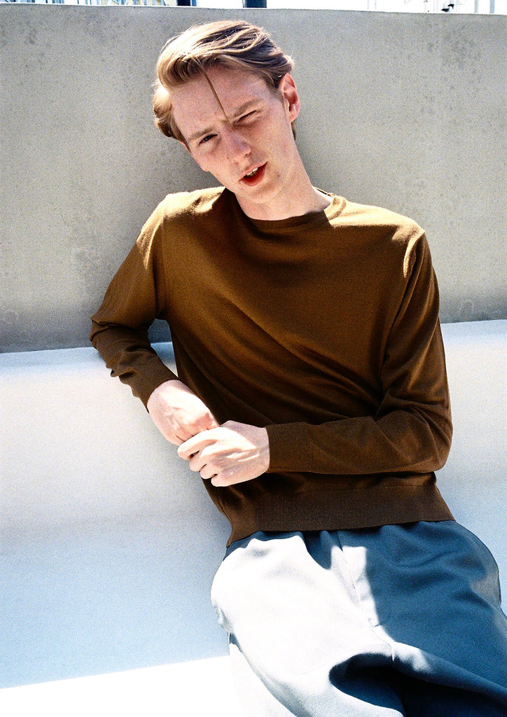 This is a 30G high-gauge crew neck knit, which is made from ultra-fine Super140's raw wool, and has one of the finest weaves among men's knitwear.