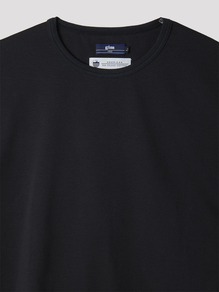 American Sea Island Cotton Dry Rib Hem T-Shirt [Black]