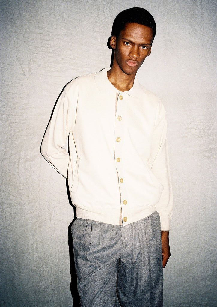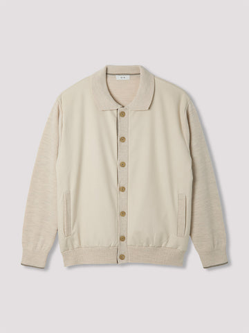 袖、背面はウール 100%のニット素材を使用。ふっくらとした編み地が豊かな保温性を持ち、柔らかな着心地を提供します。