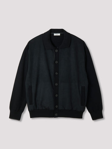 前身頃に上質なマイクロスエード(フェイクスエード)を使用。しっとりとしたマットな質感と、微細な起毛感があり、高級感と温かみを演出します。