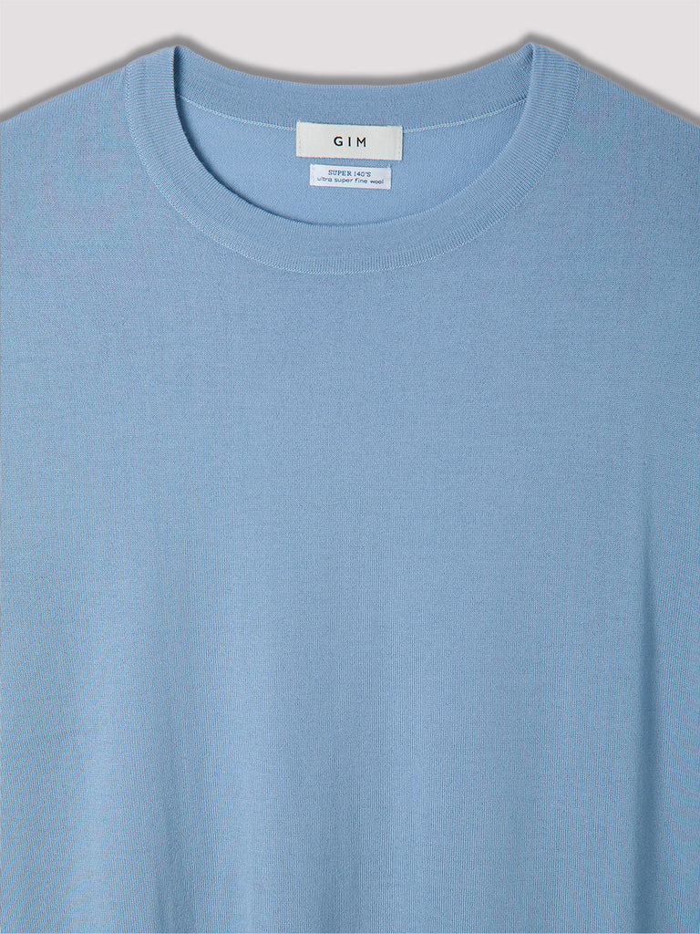 Super140's 30G Crew Neck Knit【Saxe Blue】