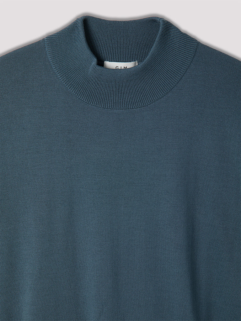 Super140's 30G Mock Neck【D.Blue】